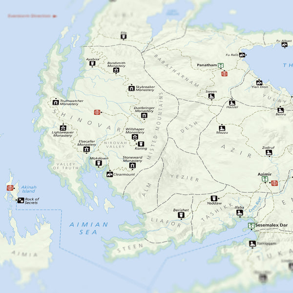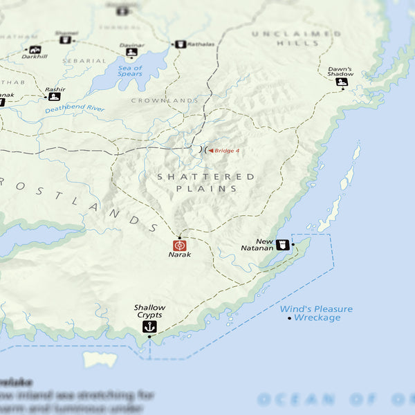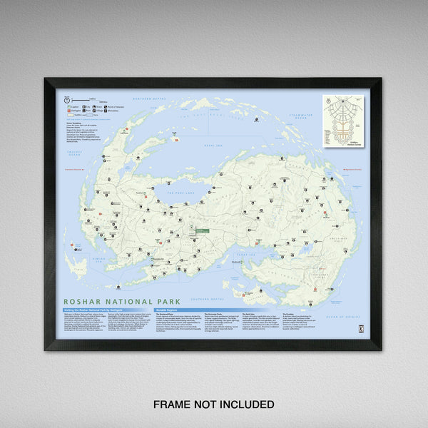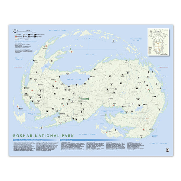 Like Maps? Like National Parks? Love The Stormlight Archives? This high quality 16x20 inch poster is complete with every location throughout Roshar. Created in the art style of Americas National Park system with inspiration from National Geographic, this poster is a great addition for any serious reader.