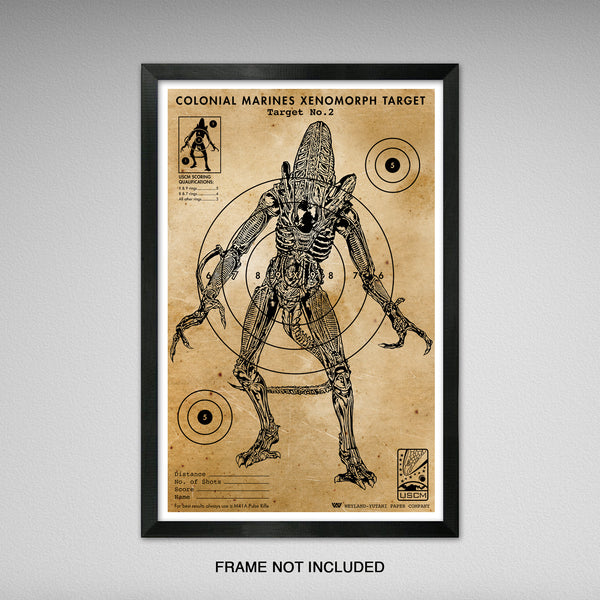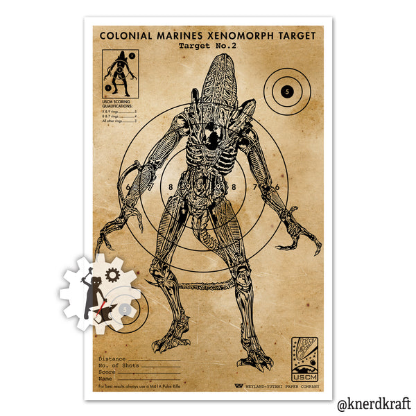 They mostly come out at night...mostly. Original 11x17 inch Aliens Xenomorph shooting target print from the Weyland Yutani Paper Co. Based on vintage 1950s shooting targets from Sears Roebuck for BB guns and small caliber rifles. (This is not a real target, but by all means use it as one)